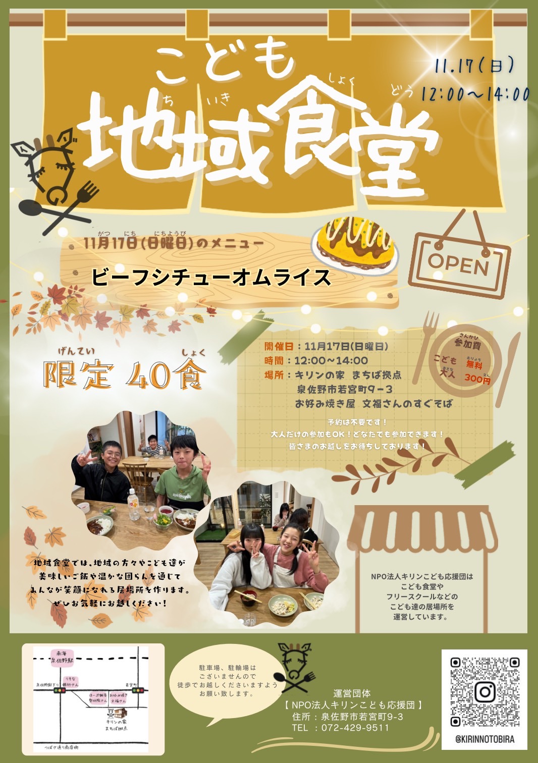 2024.11.5・キリンこども応援団🍁11月の地域食堂開催のお知らせ🍁