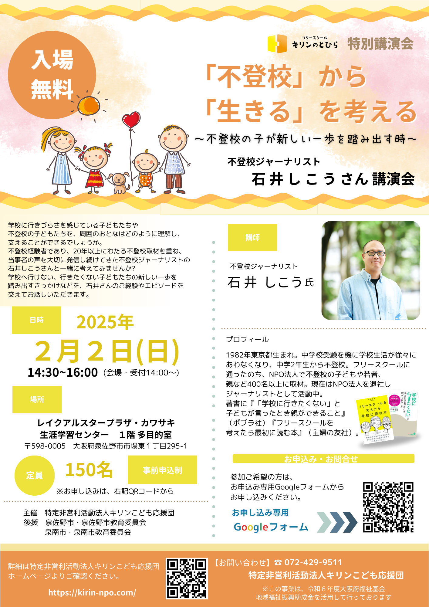 当事者の声を大切に発信し続けてきた不登校ジャーナリストの 石井しこうさんと一緒に考えてみませんか?