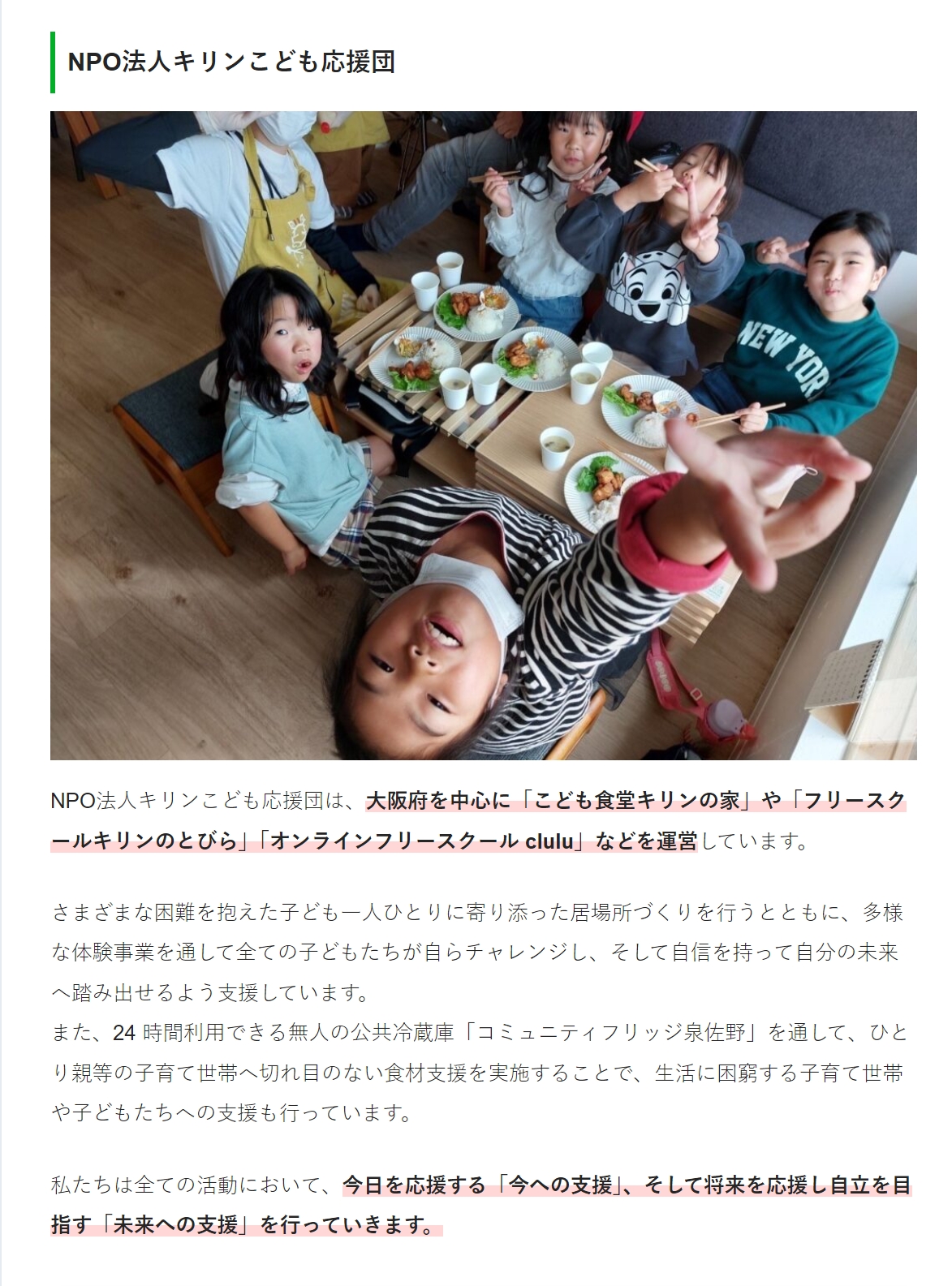 このたび、Webメディア「スタディチェーン」の 「おすすめの子ども向けNPO法人・団体まとめ」に キリンこども応援団が掲載されました。 こちらから記事をご覧いただけます。