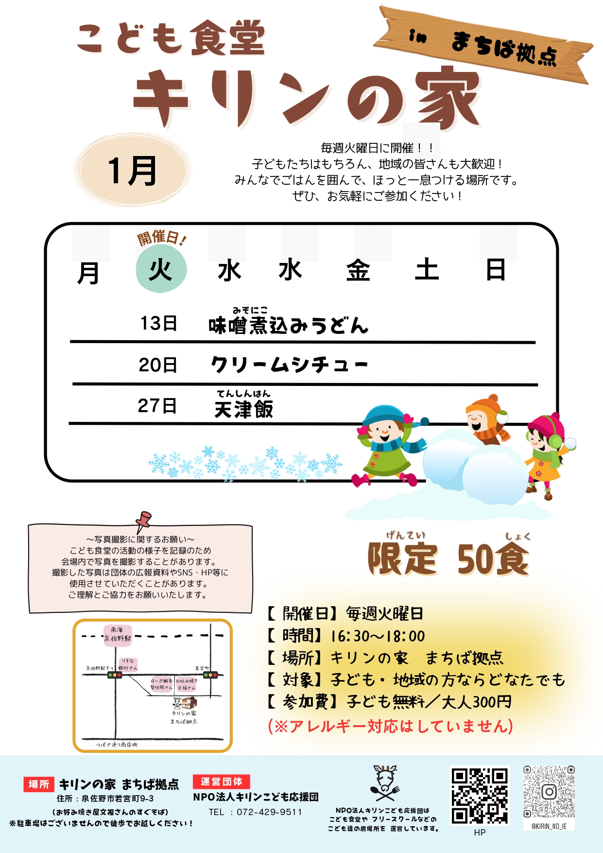 【こども食堂キリンの家 inまちば拠点】1月スケジュール⛄