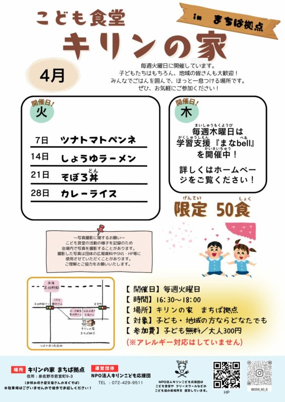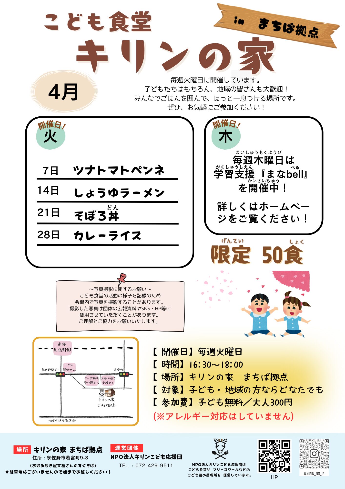 【こども食堂キリンの家 inまちば拠点】4月スケジュール🌸